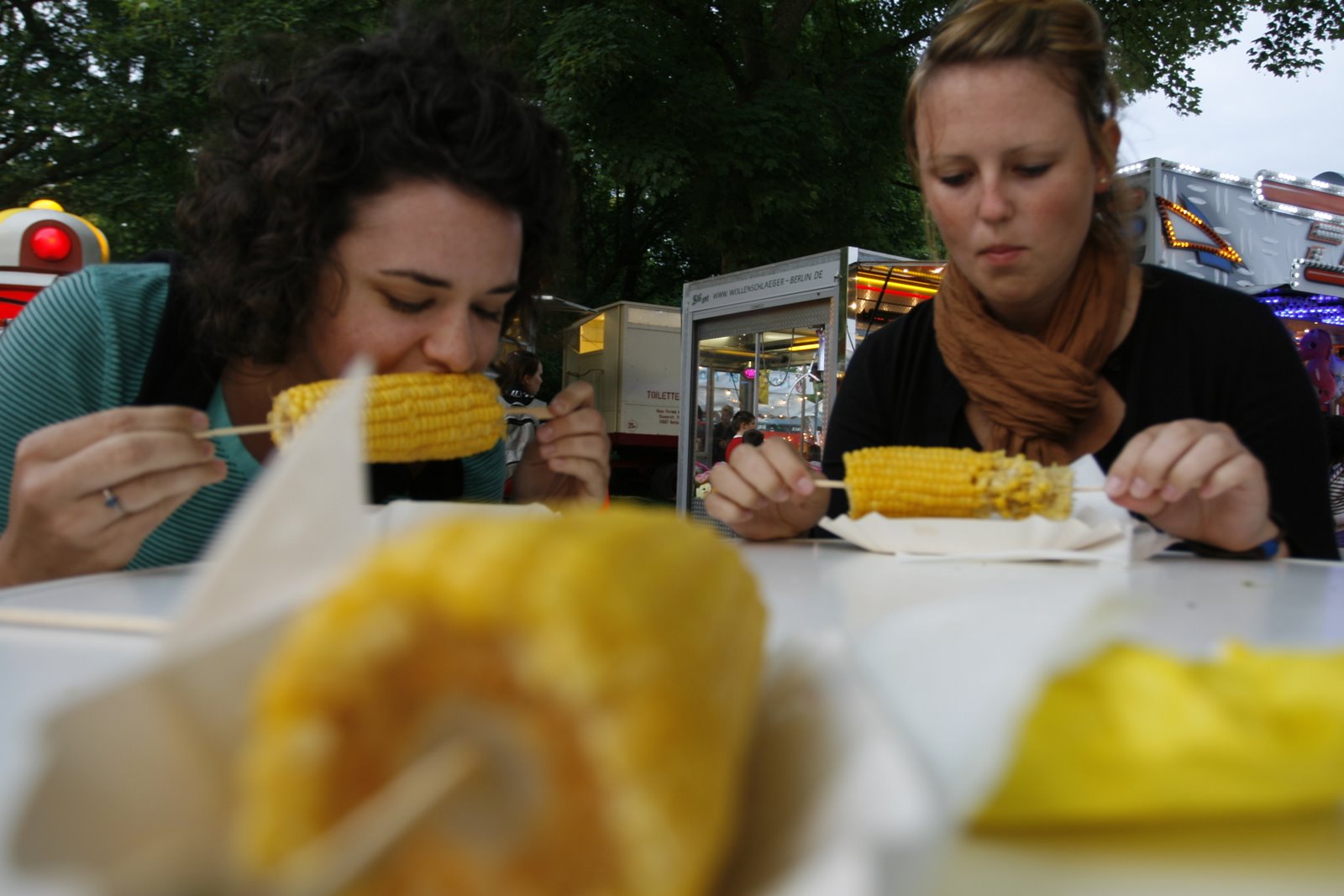 The carnival was interesting. The rides were way too expensive – the cheapest was 2 euro – so I bought one corn on the cob and cotton candy (see the photo? Corn was popular in our group. Om nom nom.)